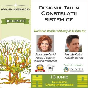 Sunt Liliana Luţu-Corâci şi sunt analist şi profesor Human Design certificat de International Human Design School şi facilitator de constelaţii sistemice (format la Center for Systemic Constellations – Londra) De-a lungul a 12 ani, constelațiile sistemice și Human Design au reprezentat pentru mine cele două instrumente care m-au ajutat să mă reconectez cu resursele mele în cele mai dificile momente ale vieții, şi fără să imi dau seama s-au transformat în timp intr-o nouă metodă. ACest instrument alchimic m-a ajutat să transform dificultăţile în resurse de vitalitate și putere.