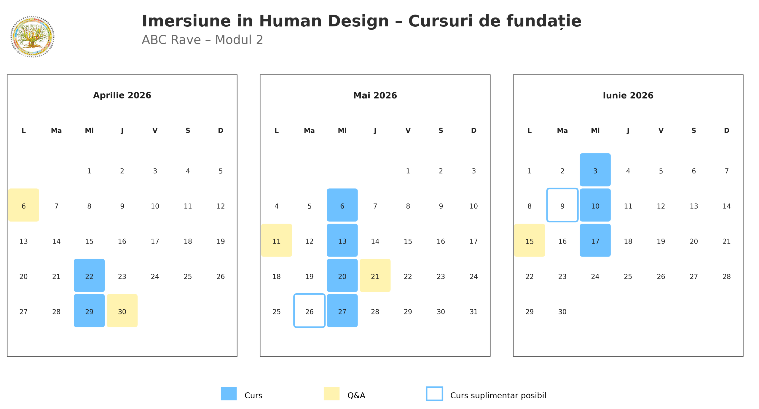 📌 Modulul 2 (ABC-ul Rave), organizat anual, începe pe 22 aprilie 2026, iar până atunci ai trei opțiuni pentru a parcurge Modulul 1 – Trăiește-ți Designul (LYD)